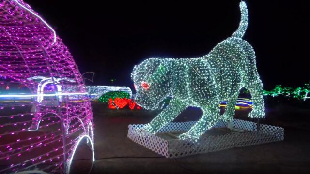 이곳의 빛은 단순히 평면에 머물지 않고 입체적인 조형물과 결합하여 하나의 서사를 만들어냅니다. 화려한 성벽을 지나면 거대한 공작새가 날개를 펼치고, 호수 위에는 우아한 백조 부부가 빛을 발하며 유영합니다. 각 구간마다 테마가 명확하게 설정되어 있어 관람객들은 지루할 틈 없이 빛의 향연을 즐길 수 있습니다.